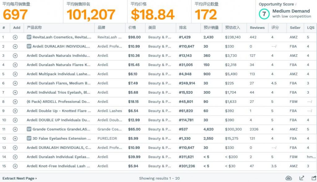 这里我们拿美国站的关键词“ardell lashes medium black”来对比下数据