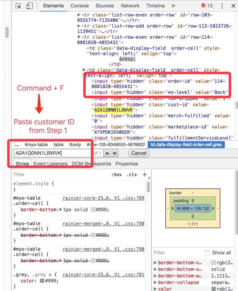 了解谁留下评论的最简单的方法是找到客户订单ID,并将其与空白或不匹配的评论者姓名相匹配。 订单ID是一个唯一的亚马逊创建的订单标识符。