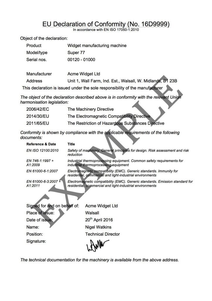 签署符合标准声明是产品获得CE安全标志的最后一步。签署了符合标准声明意味着你保证产品满足相关的所有CE指令。