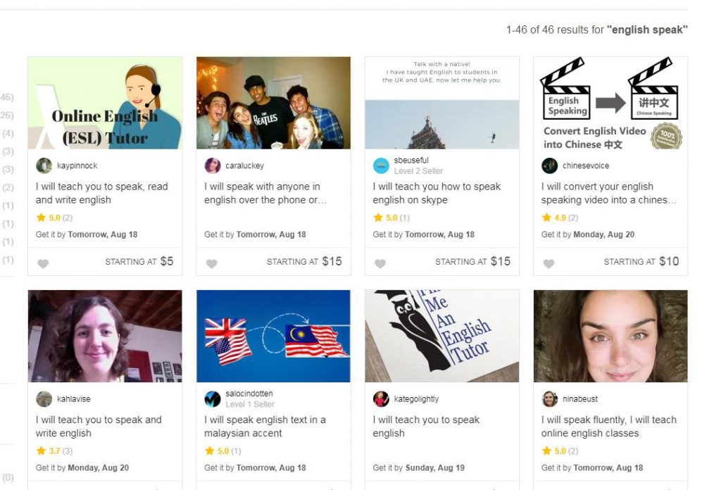 很多时候我们做跨境电商也好,做外贸也罢,其实口语一直是国人的痛,因为很少和老外真实接触,很多时候宁愿发邮件也不知道怎么和对方沟通,或者是订单出了问题那时候电话可能就是一个救命稻草,可是却不知道如何开口,要么是担心自己,要么就是真的口语不标准或者是老外说的你听不懂,那怎么破呢?现在给大家介绍一个练习口语的好方法,通过fiverr找老外练口语吧!