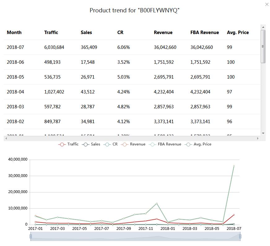 1.从亚马逊直接导出的月度流量,销售额,转化率,收入和价格数据。 不是来自BSR猜测或库存跟踪。