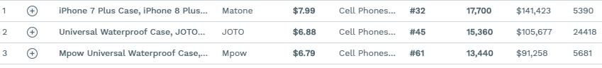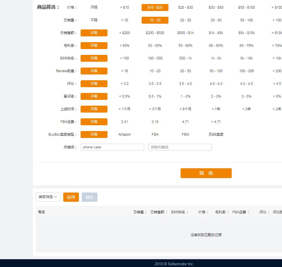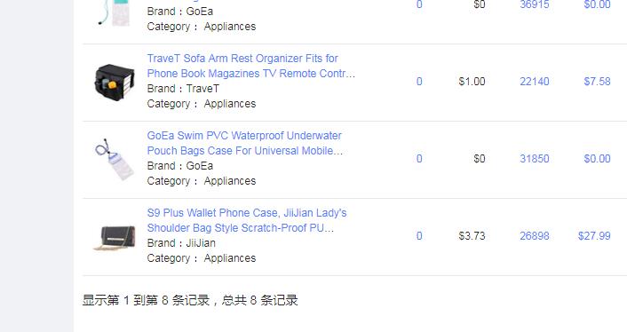 这里我们随便搜索了一个词“Phone Case”,这所谓亚马逊产品大王类型的词竟然只有8个结果,让人匪夷所思,只是选品工具?不禁疑惑,而且数据也没有,再次搜索了多个词之后,就算有产品的也没有销售数据等参考数据。