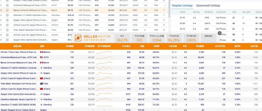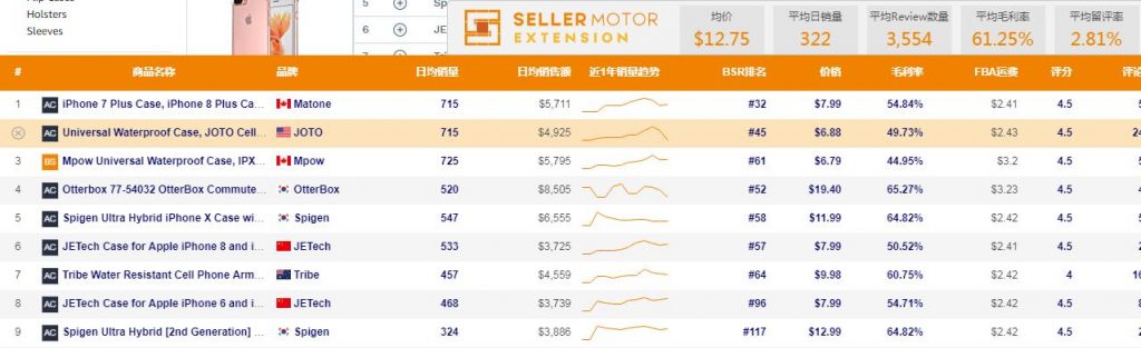 然后我们使用插件版本来测试下数据,同样,我们也是用最热门的类目手机壳来测试数据,打开后发现是顿卡的节奏,不过最后数据还是出来了,整体来说几乎是一个偏高的数据值,不过我们也在底部看到了“您正在使用公测版,数据未经SellerMotor专利算法校准,SellerMotor不对功能及数据承担任何责任”,感觉小白鼠的节奏。