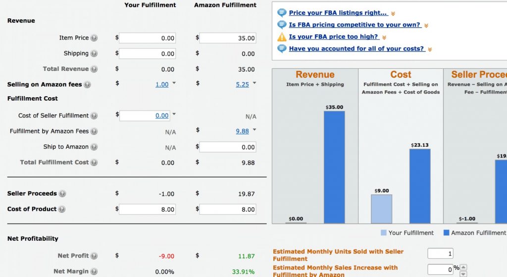 Tips:当FBA计算器要求你填产品成本的时候,确保你在阿里巴巴上看过采购价和产品销售均价。
