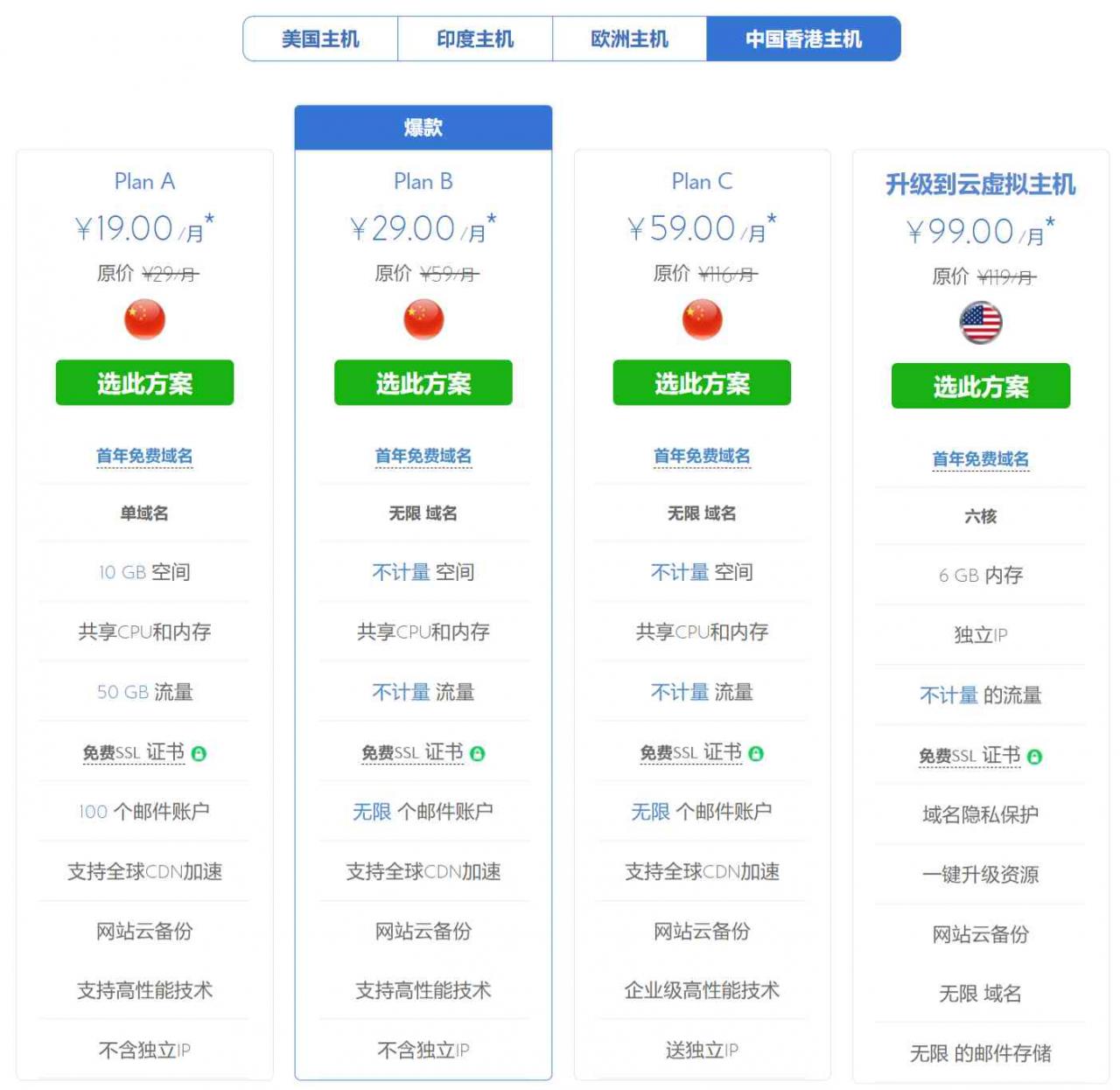 2.选择您所需的计划(建议选择香港Plan A)