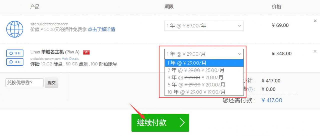 步骤3:购买虚拟主机