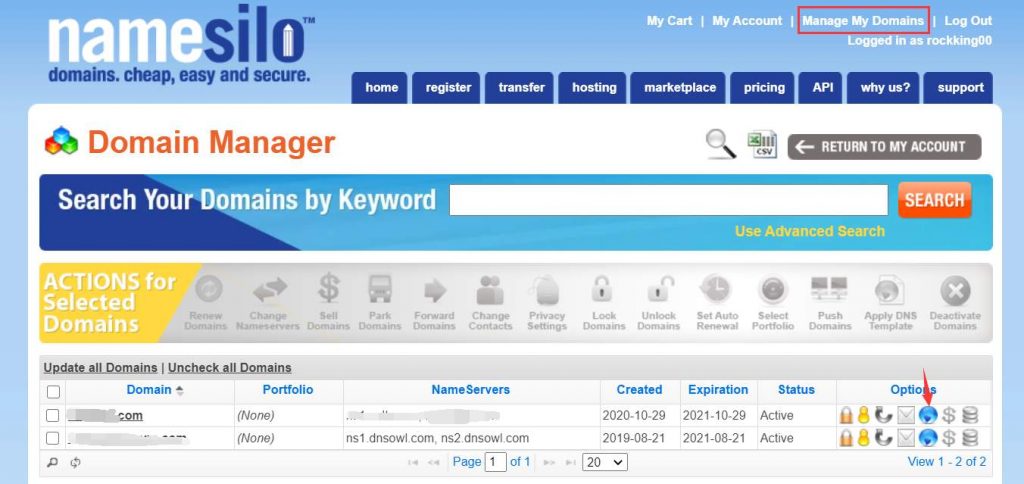 此处以Namesilo 域名修改NS记录和A记录为例: