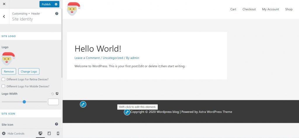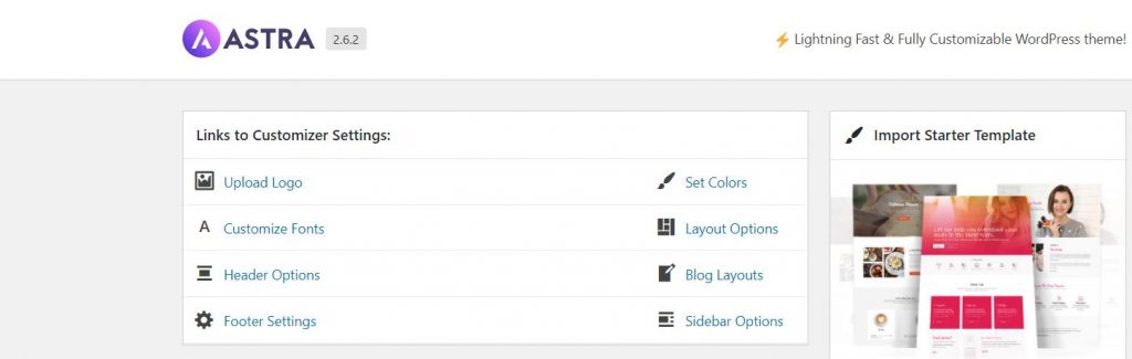 我使用的是”Astra主题”,接下来我们转到“Appearance → Astra Options”看看还能做什么。