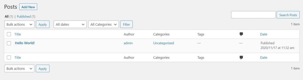 在 WordPress 中,你可以管理各种类型的内容,包括Posts、Pages、Categories、Tags、Media等等,对于受管理的每个对象,都有一个与之对应的页面,并且每个页面都使用类似的格式: