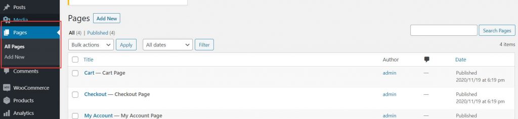 在网站上安装了WooCommerce并添加了产品之后,您会注意到,在此过程中,WooCommerce自动创建了新页面。