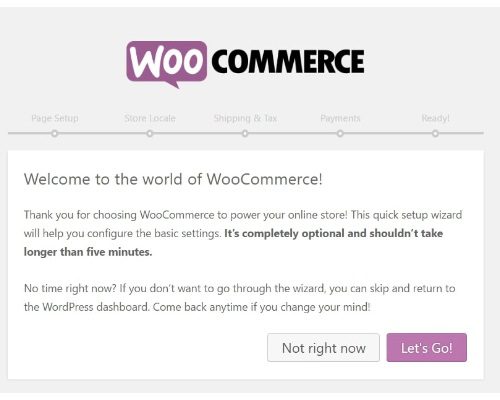 请直接单击”Activate”按钮,让网站启用WooCommerce插件。启用后,您会看到WooCommerce 的首次设置画面: