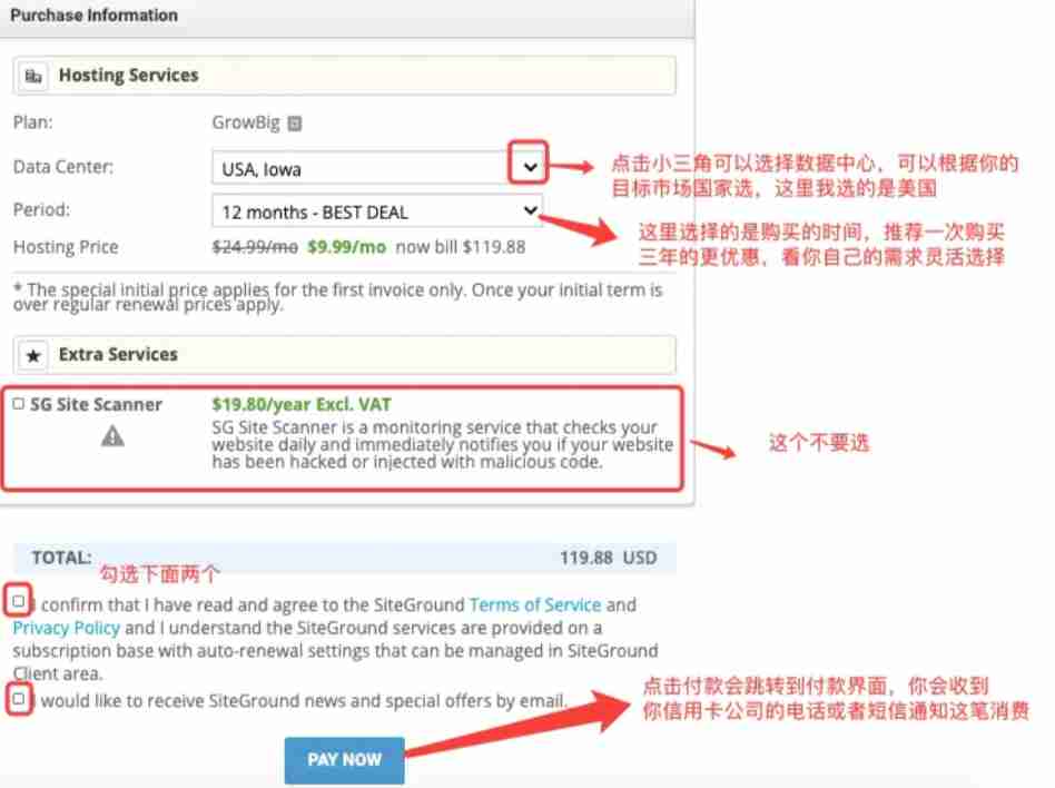 在购买虚拟主机前你需要准备一张双币的visa的信用卡,没有信用卡的话也可以使用paypal绑定储蓄卡支付,但是需要联系Siteground官方客服,申请paypal付款。