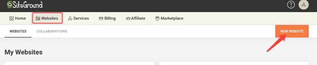 登入Siteground主机后台,点击website选项卡,如下图,已经创建好的网站会出现在下面。点击new website