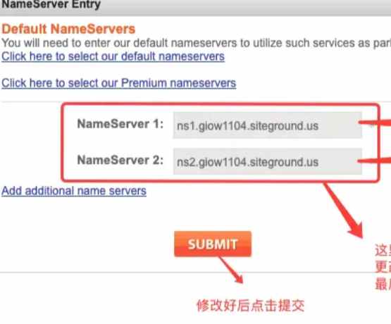 选中需要修改DNS服务器地址的域名,点击上方的change Nameservers进入修改。