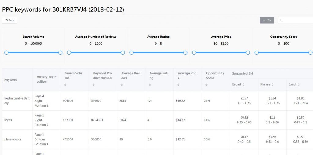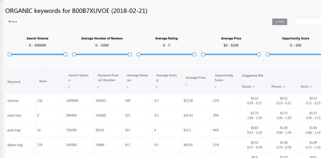 正如我们上面提到的那样,这个工具向您显示所有带来流量到列表的关键字。通常,新产品对许多关键字的排名并不理想,这就是为什么您只能在关键字报告中看到一些结果的原因。这就是为什么当您使用该工具时,我们建议您选择您的顶级竞争对手的ASIN,这些ASIN销量很好,并且排名很好。